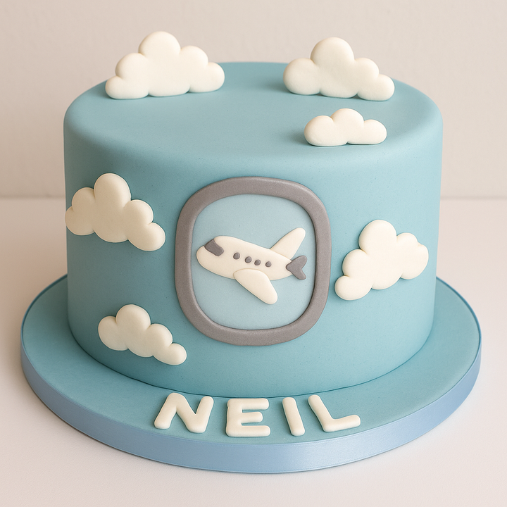 This airplane fondant cake is perfect for travel lovers, birthday celebrations, and adventure-themed parties, with detailed clouds and an adorable plane window that brings joy to every celebration—fondant cake, airplane cake, birthday cake, and travel party all come together in one stunning design
